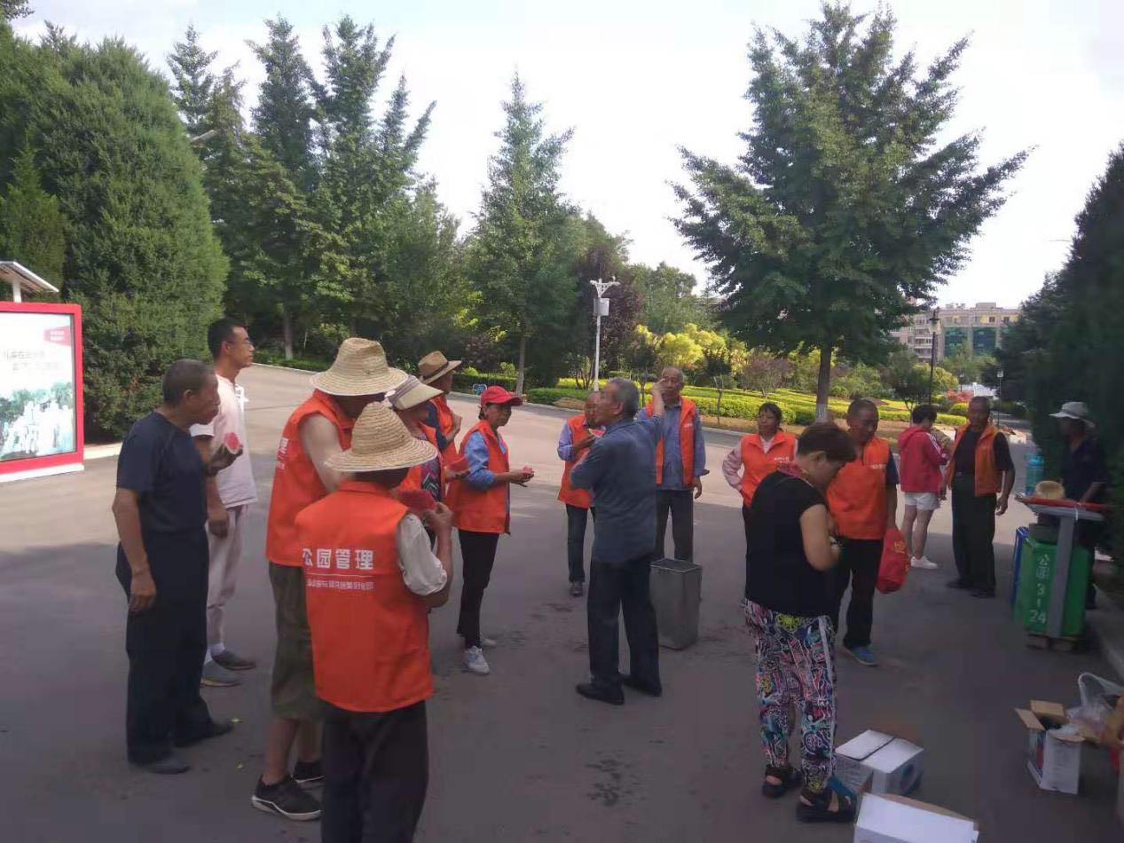 隨后,慰問(wèn)活動(dòng)小組又來(lái)到晉城八中附近,慰問(wèn)了在八中公園辛勤勞動(dòng)的8名一線員工。
