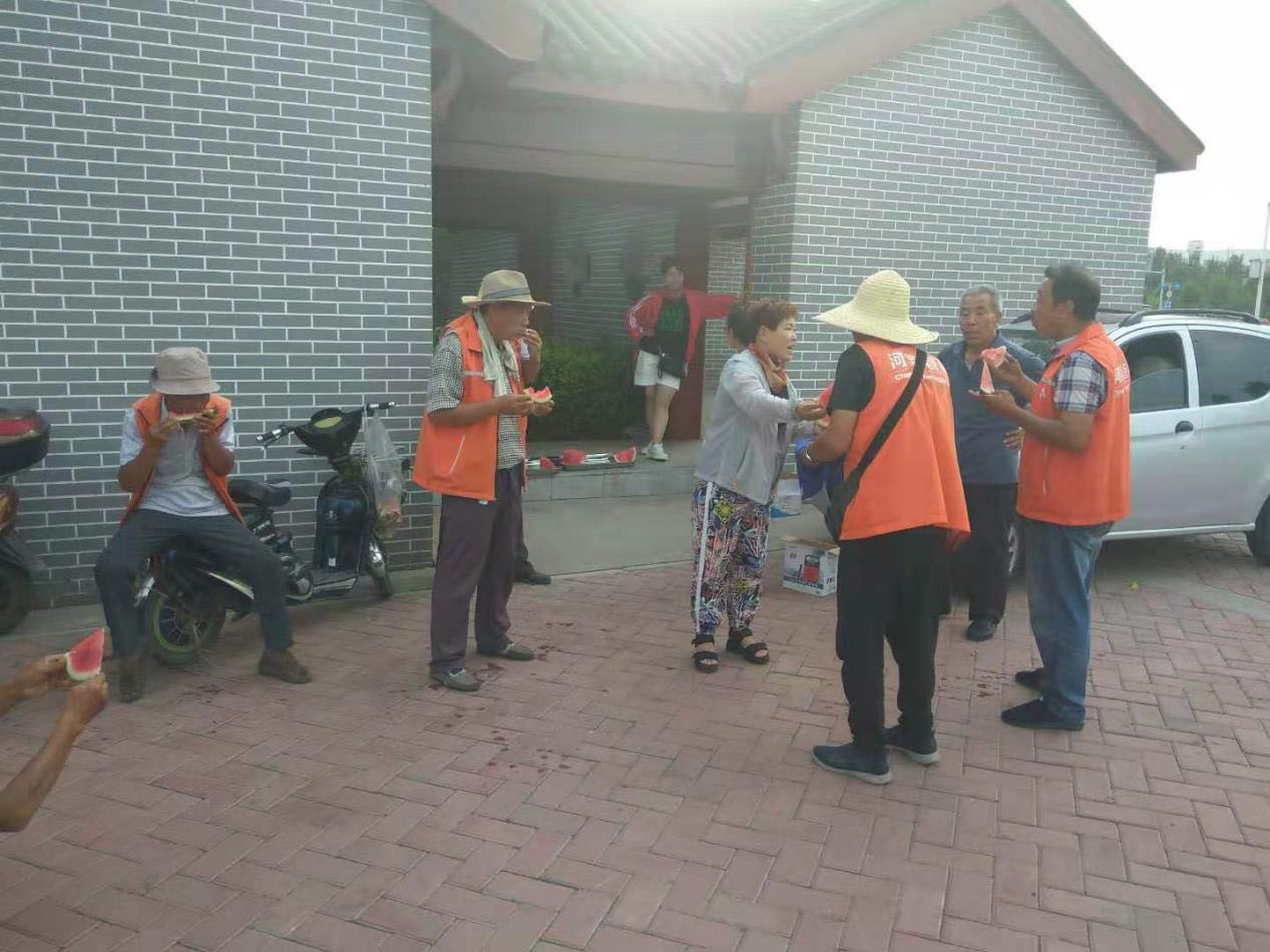 在體育器材區(qū),慰問(wèn)小組人員切好西瓜,一一遞給員工,并向員工發(fā)放了面包、白糖等慰問(wèn)品。工會(huì)崔主席向大家致敬問(wèn)好,代表公司向頭頂烈日仍堅(jiān)守在工作崗位的員工們表示感謝。員工們一邊品嘗著西瓜,一邊向崔主席就勞保福利、個(gè)人休假等關(guān)于自身切身利益的問(wèn)題發(fā)表了自己的意見(jiàn)、建議,崔主席認(rèn)真傾聽(tīng)并一一解答,能現(xiàn)場(chǎng)解決的立刻解決,對(duì)職工提出暫時(shí)沒(méi)能答復(fù)的問(wèn)題,他還認(rèn)真做好記錄,帶回和公司有關(guān)領(lǐng)導(dǎo)研究。他要求主管要定時(shí)開(kāi)會(huì)與員工交流,做到勤于向員工問(wèn)事,善于傾聽(tīng)員工說(shuō)事,敢于為員工辦事。了解職工在工作、生活中遇到的各種困難,真正解決職工所遇到的實(shí)際問(wèn)題。還讓個(gè)別員工為堅(jiān)持在澤州公園東門勞作的員工帶去西瓜、面包、白糖,捎去領(lǐng)導(dǎo)的問(wèn)候,F(xiàn)場(chǎng)氣氛平等、友好、和諧、融洽。員工都認(rèn)為,公司領(lǐng)導(dǎo)在不畏酷暑,情系一線下基層慰問(wèn)員工,面對(duì)面聽(tīng)取員工的意見(jiàn),領(lǐng)導(dǎo)和員工的距離沒(méi)有了,體現(xiàn)出公司對(duì)一線員工的重視和關(guān)心,更體現(xiàn)了領(lǐng)導(dǎo)踏實(shí)的作風(fēng)和務(wù)實(shí)的態(tài)度。