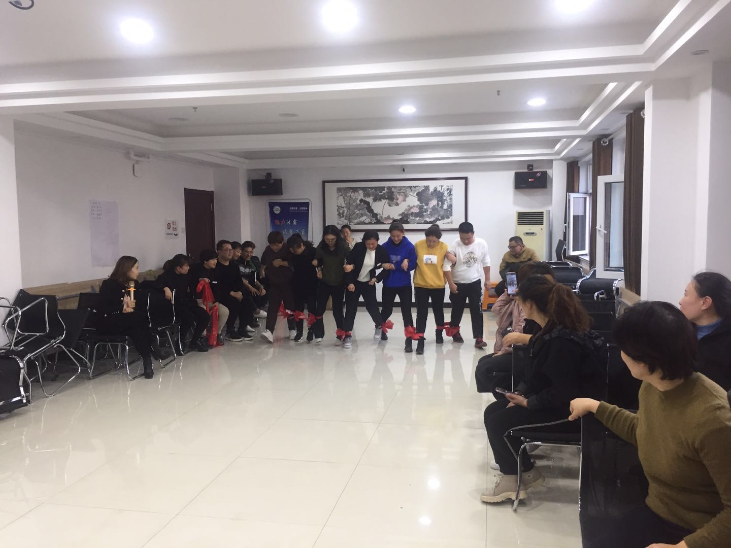 此次拓展訓練旨在進一步強化管理人員的團隊合作意識,參加活動人員分四組,在素質(zhì)拓展訓練指導老師的精心指導下,通過團隊成員的團結(jié)協(xié)作,先后完成了“小主人、小天使”“過AB門”“兩人三足”等一系列以激發(fā)個人潛能、熔煉團隊智慧為宗旨的室內(nèi)素質(zhì)拓展訓練項目。