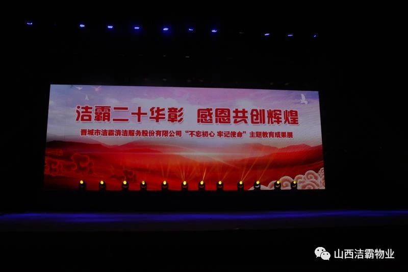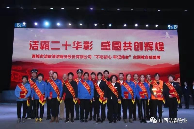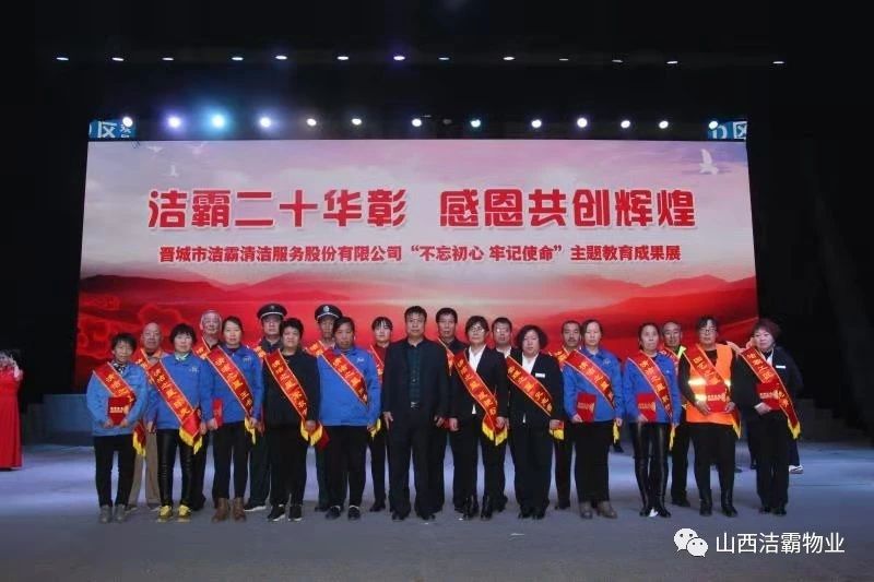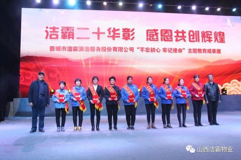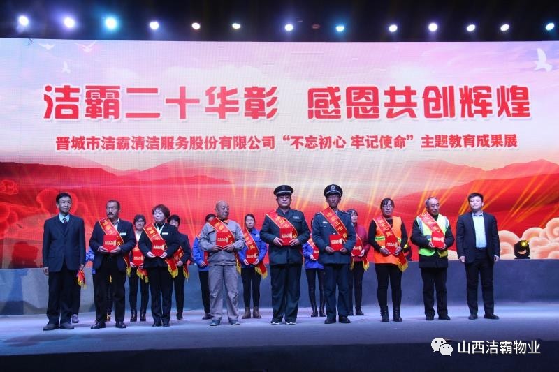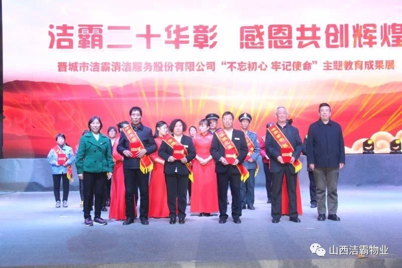 本次晚會以“潔霸二十華彰,感恩共創(chuàng)輝煌”為主題,此次慶典的核心思想是“感恩”,主要角色是潔霸的創(chuàng)業(yè)者。為此,公司對入職潔霸的創(chuàng)業(yè)功勛和一線員工進(jìn)行了表彰獎勵。本次晚會共設(shè)8個獎項(xiàng),包括“潔霸先鋒”“奉獻(xiàn)之星”“管理之星”“潔霸管家”“潔霸工匠”“清潔之星”“潔霸衛(wèi)士”“園藝之星”等。他們是:李山虎、張永智、史志霞、陳福林、王紅軍、余艷青、劉二丑、成艷粉、楊改梅、王書玲、張國榮、耿竹青、張粉霞、宋秋苗、陳先梅、張晉平、張偉山、趙瑞軍、王廣平、郭志云。晉城市原副市長成育廷、晉城市商務(wù)局原局長王新善、晉城市非公和社會組織工委書記郎軍芳、晉城市婦聯(lián)三級調(diào)研員李蓮菊、晉城市總工會商貿(mào)輕紡煙草服務(wù)業(yè)工會主席張玉濤、晉城市城區(qū)財(cái)政局局長翟明太等領(lǐng)導(dǎo)為他們頒獎。
