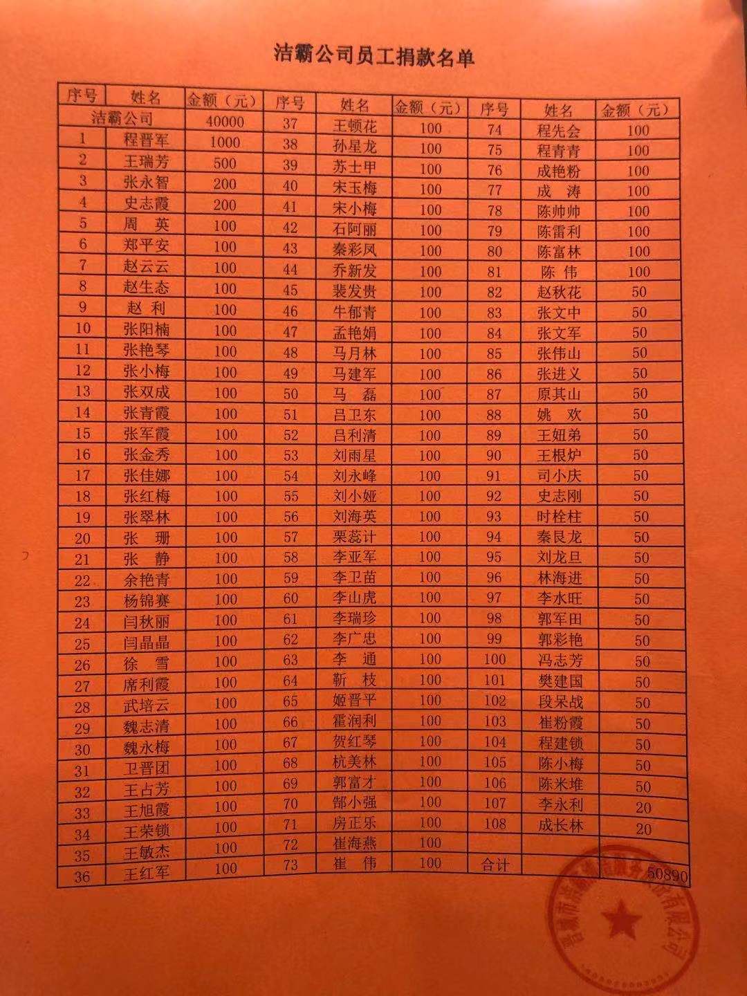 為避免疫情期間大規(guī)模聚集,公司捐款活動(dòng)采取微信轉(zhuǎn)賬形式進(jìn)行,僅僅一天多時(shí)間,共募集善款一百余筆,累計(jì)金額10890元。加之公司捐助的40000元,共計(jì)50890元,F(xiàn)已統(tǒng)一轉(zhuǎn)入晉城市紅十字會(huì)賬戶(hù),定向捐助晉城市第二人民醫(yī)院用于疫情防控工作。