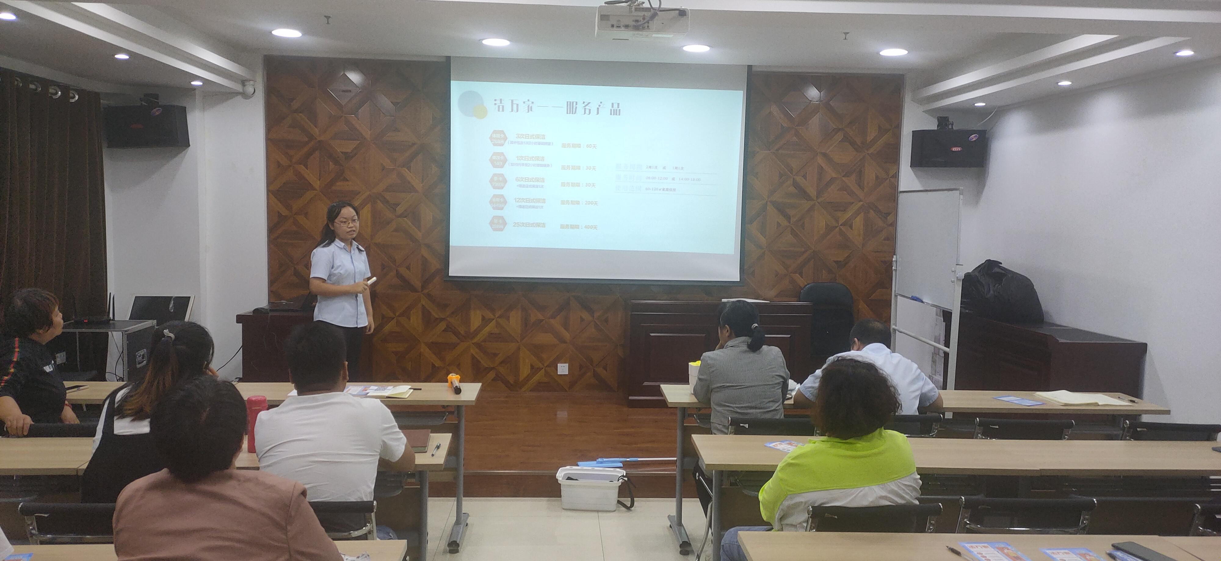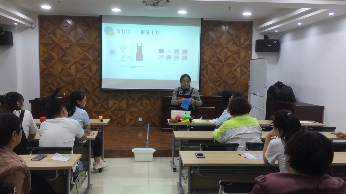 隨后由公司人力資源部負(fù)責(zé)人司夢(mèng)琴對(duì)“潔萬(wàn)家”日常保潔產(chǎn)品進(jìn)行了分類(lèi)介紹,此外還介紹了產(chǎn)品推廣獎(jiǎng)勵(lì)方案和推廣話(huà)術(shù),對(duì)大家日后推廣過(guò)程中會(huì)遇到的客戶(hù)提出的各種問(wèn)題進(jìn)行了預(yù)設(shè)并一一詳細(xì)作答。