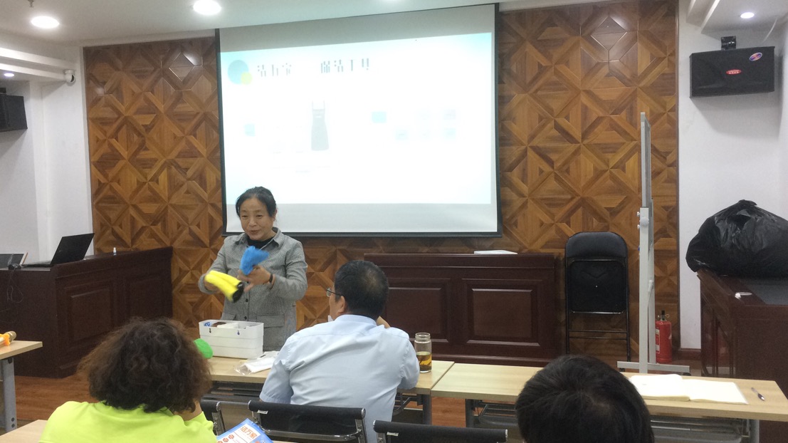 會(huì)議開(kāi)場(chǎng),從福建福州取經(jīng)回來(lái)的人力資源部呂利清用簡(jiǎn)短的一句話(huà)首先點(diǎn)出了“潔萬(wàn)家”產(chǎn)品的亮點(diǎn)——“1人1次4小時(shí)日常保潔服務(wù)”,接著她從服務(wù)人員、服務(wù)時(shí)間、服務(wù)內(nèi)容、保潔工具、保潔流程等方面介紹了“潔萬(wàn)家”日常保潔與年關(guān)保潔以及居家保潔的區(qū)別,并對(duì)服務(wù)內(nèi)容所涵蓋的6大區(qū)域(臥室、衛(wèi)生間、餐廳、客廳、廚房、陽(yáng)臺(tái))以及專(zhuān)用8色保潔布的分類(lèi)使用進(jìn)行了詳細(xì)的介紹。