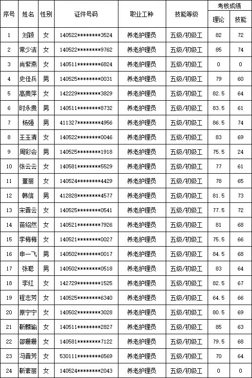 山西潔霸清潔服務(wù)集團(tuán)股份有限公司職業(yè)技能等級(jí)認(rèn)定中心現(xiàn)將2025年11月2日認(rèn)定人員成績(jī)公示如下: